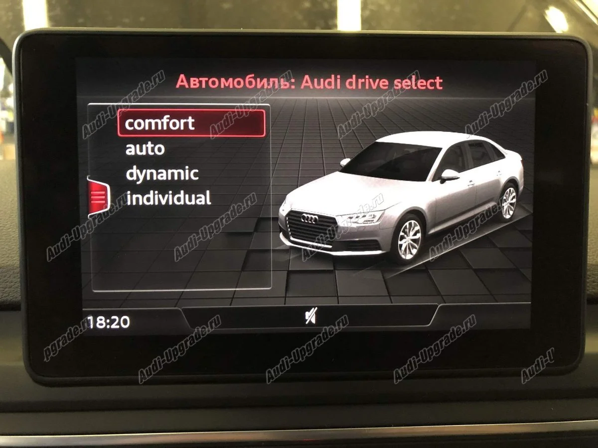 Доступные режимы: comfort, auto, dynamic  effiiciency(в сочетании с MMI® Navigation plus также доступен режим individual).
