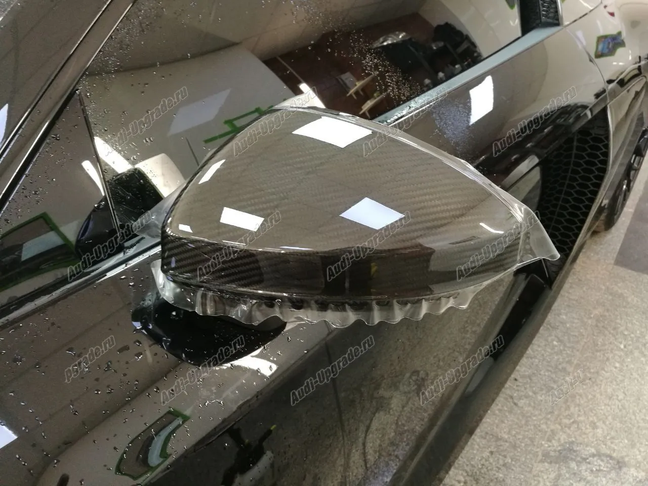 Оклейка(бронирование) корпусов зеркал антигравийной  полиуретановой пленкой  SUNTEK 200 мкр. Audi R8 8S NEW