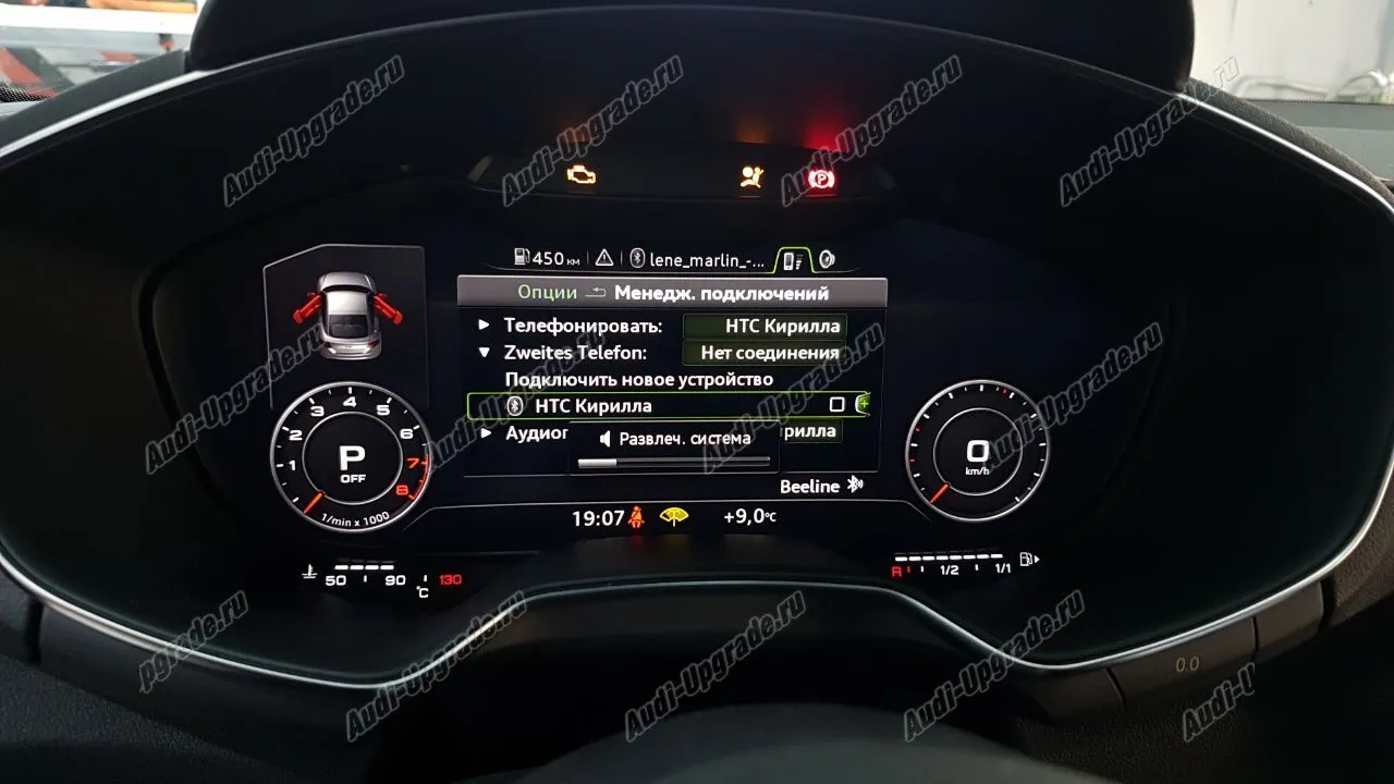AUDI Bluetooth позволяет общаться по мобильному телефону через громкую связь в автомобиле и прослушивать музыку с Вашего телефона (с возможностью просмотра обложек альбомов). После успешного соединения по Bluetooth Вы сможете управлять всеми настройками Вашего мобильного телефона с помощью клавиш многофункционального рулевого колеса или клавиш системы MIB.При входящем звонке на Virtual cockpit будет отображаться не только имя звонящего, но и его фотография (если фото привязано к контакту в телефоне).