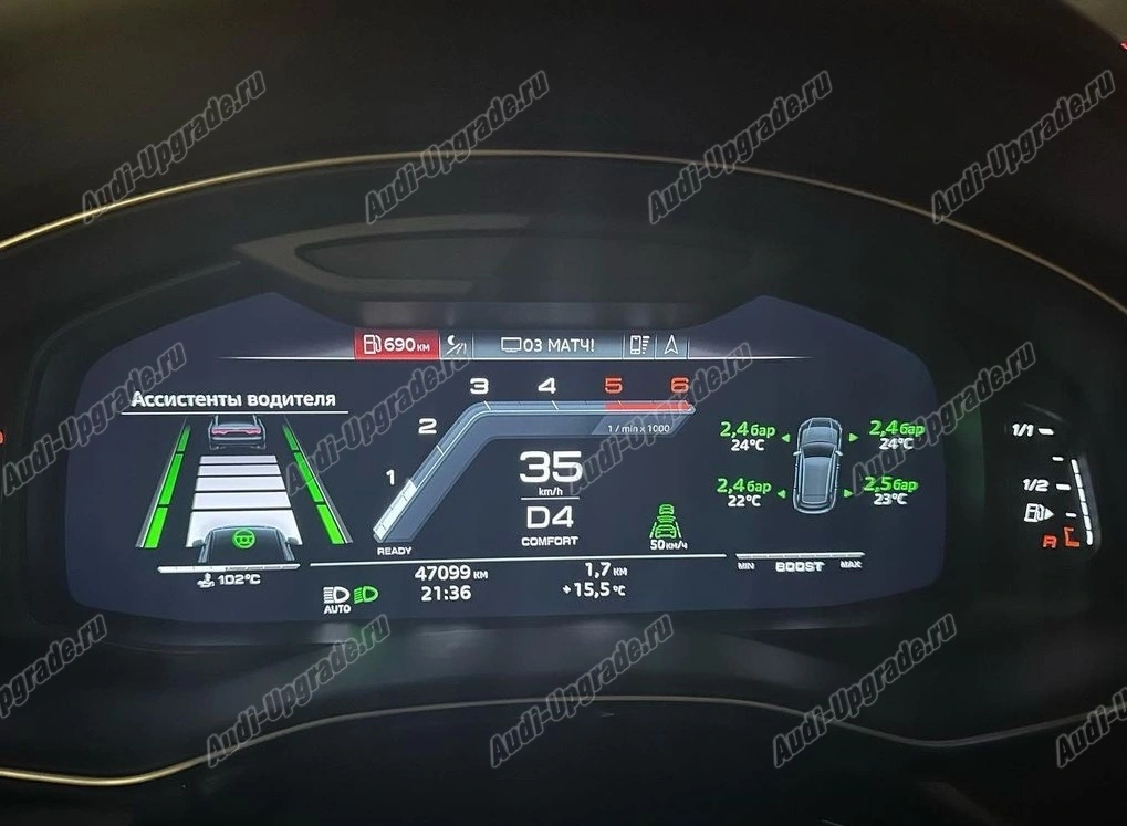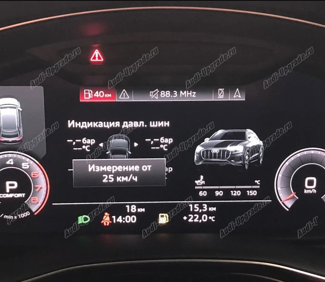 Давление и температура в каждой шине отображается в меню MMI и на приборной панели.