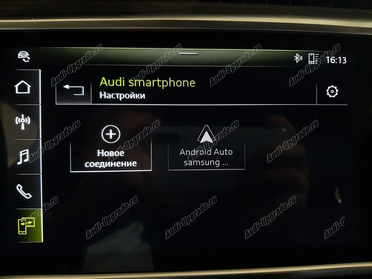 Интерфейс Audi для соединения смартфона с информационной системой автомобиля через разъем USB. Информация со смартфона отображается на дисплее MMI. Доступны следующую сервисы: телефония, сообщения(sms,WhatsApp,Telegram), навигация, музыка. Подключение производится только через оригинальный кабель для iPhone или телефонов с Android — Разъем в подлокотнике.