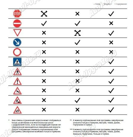 распознавания дорожных знаков в Audi A8 (модель 4N)
