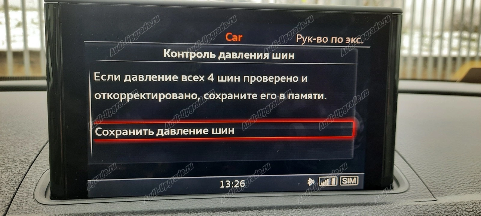 - активация меню отображения функции контроля давления в шинах на приборной панели