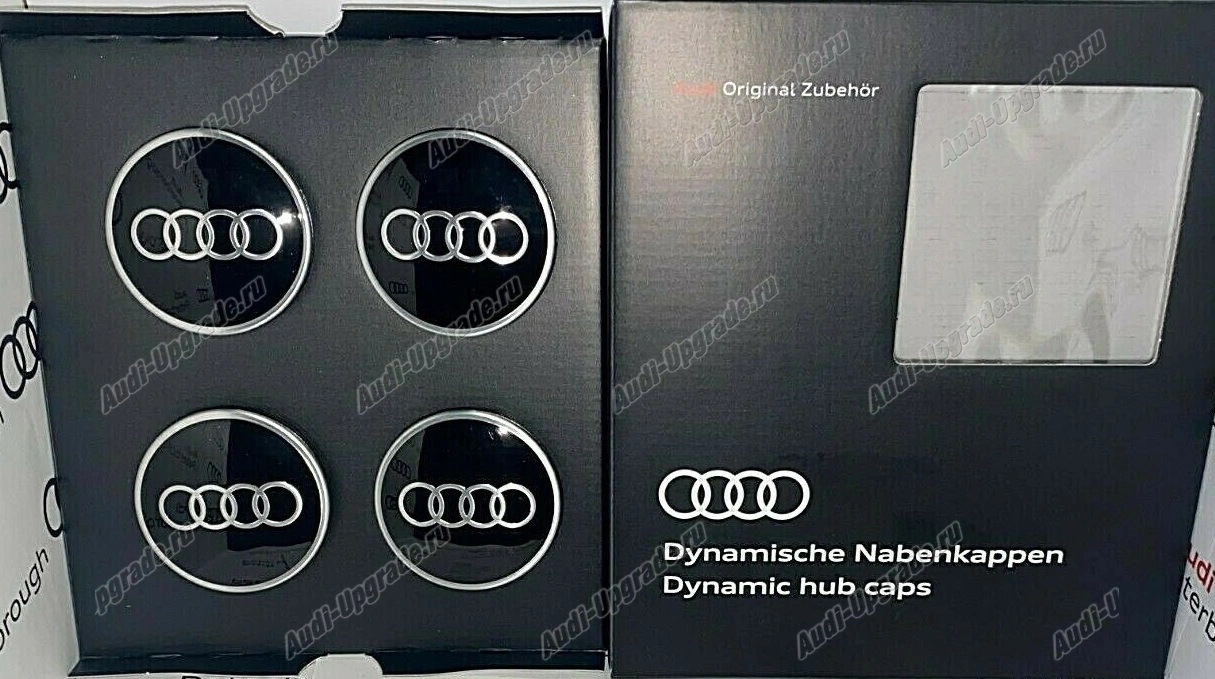 Динамическая заглушка ступицы (кольца Audi) Выравнивается по горизонтали при движении автомобиля. Создает отличный оптический эффект, особенно при движении. Колесо вращается, логотип неподвижен.