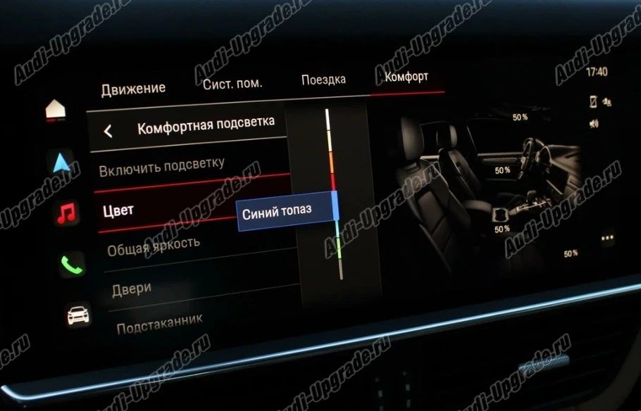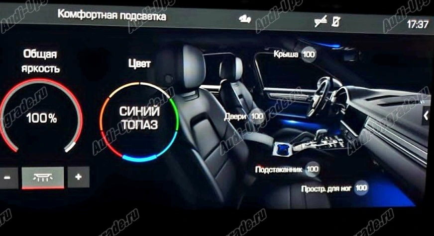 Освещение салона отраженным светом повышает уровень комфорта, а благодаря особому световому настроению в салоне создается приятная атмосфера. Вы можете выбрать один из 7 цветов и самостоятельно регулировать интенсивность подсветки.