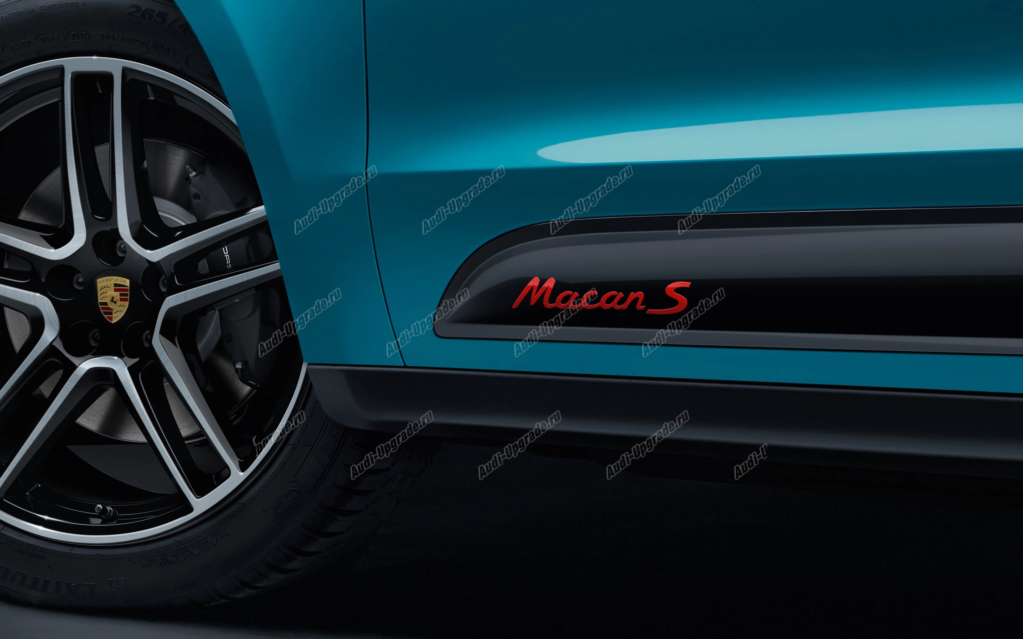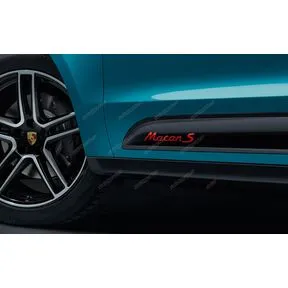 Название модели на боковых молдингах золотистого, красного, серебристого и чёрного цвета Porsche Macan