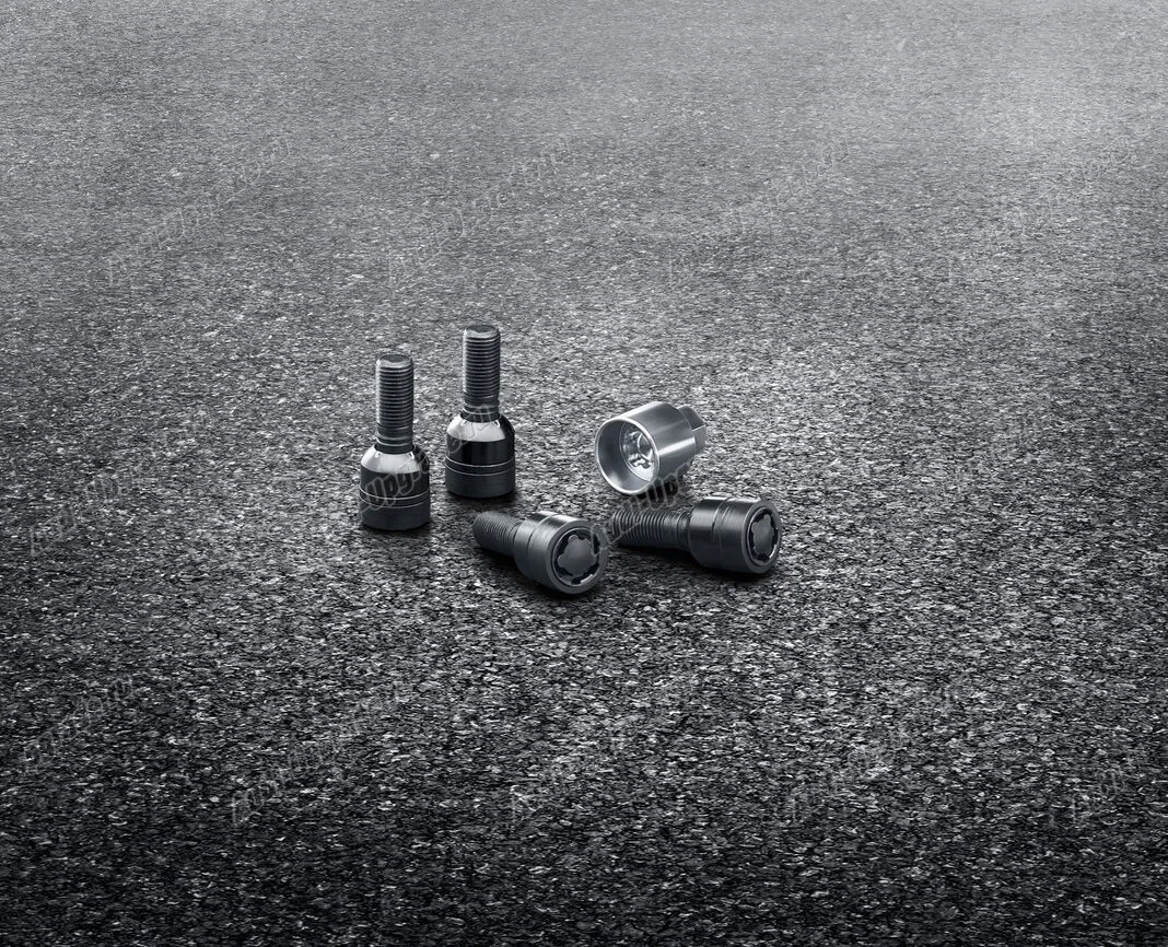 Комплект секреток черного цвета, состоящий из 4 колесных болтов-секреток