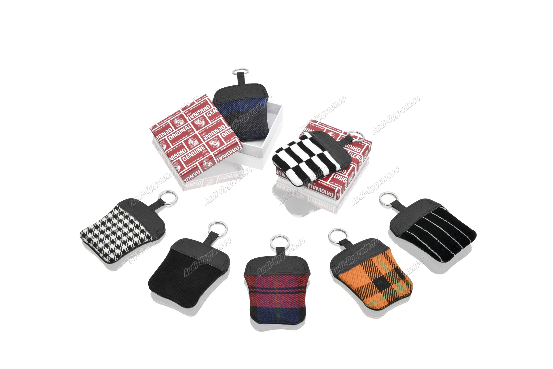 Чехол для ключей Pepita с тисненым гербом Porsche. С одной стороны натуральная кожа, с другой - ткань