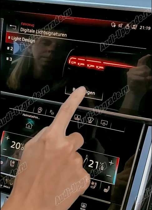 Три варианта рисунка фонарей и анимации. Переключение динамической последовательности освещения, задние фонари Эффектный световой сценарий задних фонарей. Через последующее переключение, осуществляемое вашим партнером Audi, на одно из 3 выбираемых динамических световых событий. Дизайн освещения Audi полон характера. Динамические световые эффекты и эффектные световые образы подчеркивают прогрессивный внешний вид вашего Audi и бросаются в глаза. С помощью документа активации сценарий динамического освещения в заднем фонаре можно впоследствии переключить на одно из 3 различных световых событий. При покупке активационного документа клиенты могут выбрать один из трех доступных сценариев освещения и неоднократно пересматривать свое решение