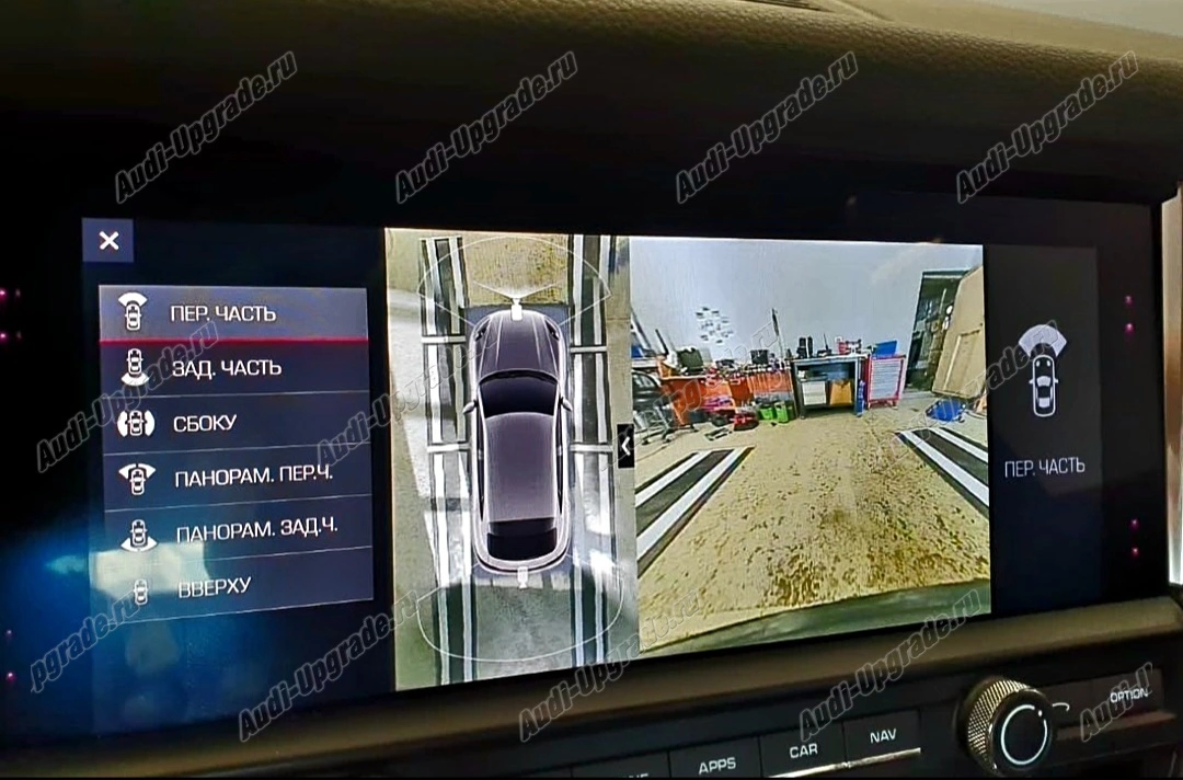 Система кругового обзора дополняет камеру заднего вида еще тремя камерами с высоким разрешением в передней части автомобиля и в нижней части корпусов зеркал заднего вида. На основе информации от всех четырех камер система генерирует виртуальный вид автомобиля в проекции сверху и выводит его на дисплей РСМ.