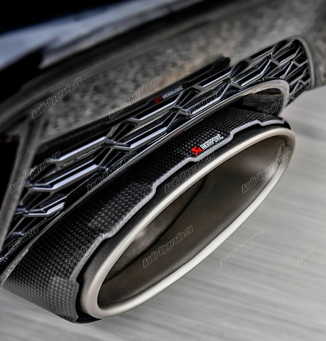 Этот эффектный выхлоп обладает звуком и производительностью. Полностью изготовленный из легкого высококачественного титана и имеет центральный глушитель с двумя клапанами по бокам (корпуса обоих клапанов отлиты на собственном литейном заводе Akrapovic) и соединительную трубку с Х-образным соединительным элементом. X-образное соединение в секции соединительной трубы с уникальными звуковыми параметрами , предназначенными для максимального удовольствия, придает выхлопной системе характерный высокочастотный гоночный тон Akrapovič в верхнем диапазоне оборотов, который дополняется глубоким и культовым рокотом Akrapovič на низких оборотах. В диапазоне оборотов, обеспечивая характерное рычание V8. Также есть комфортный режим, без посторонних шумов и гула в салоне. Привлекательные выхлопные трубы из углеродного волокна/титана, выходящие по обеим сторонам задней части автомобиля, также увеличивают мощность на 6,9 кВт при 5600 об/мин и добавляют 17,2 Нм крутящего момента при 2500 об/мин при тестировании на динамометрическом стенде Akrapovic, в гонках с RSQ8 против стандартной выхлопной системы RSSport. Это продукт plug-and-play, и благодаря одобрению типа ECE нет необходимости настраивать ЭБУ. Для модернизации выхлопной системы EvolutionLine (Titanium) доступны дополнительный звуковой комплект AkrapovicSoundKit и комплект труб Downpipe / Link (SS).