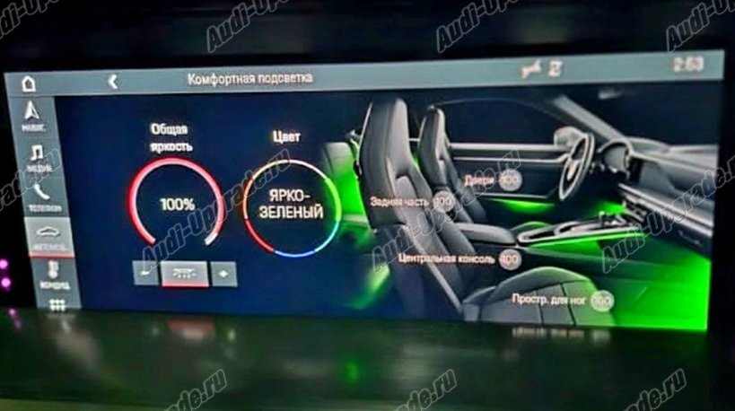 Освещение салона отраженным светом повышает уровень комфорта, а благодаря особому световому настроению в салоне создается приятная атмосфера. Вы можете выбрать один из 7 цветов и самостоятельно регулировать интенсивность подсветки и зоны освещению.