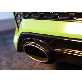 Собственный литейный цех отливает корпуса для двух выпускных клапанов, по одному с каждой стороны глушителя, чтобы добиться нужного звучания. Отличительные тона пятицилиндрового двигателя создают расслабленное и приятное урчание в режиме комфорта, со вкусом напоминая о потенциале автомобиля при движении в динамичном режиме, а затем полный звук воспроизводится при ускорении и достижении предела. В качестве дополнительной опции доступен глянцевый задний диффузор из углеродного волокна ручной работы, а также дополнительный звуковой комплект Akrapovic, обеспечивающий полный контроль над звуками выхлопа.