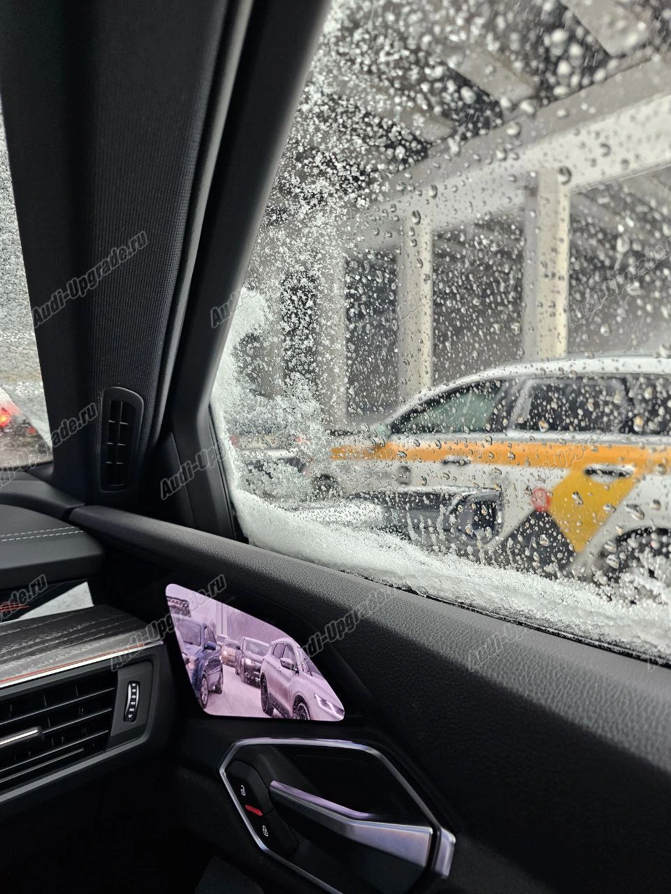 Изображение с камеры в зеркале заднего вида выводится на дисплей обшивки двери.