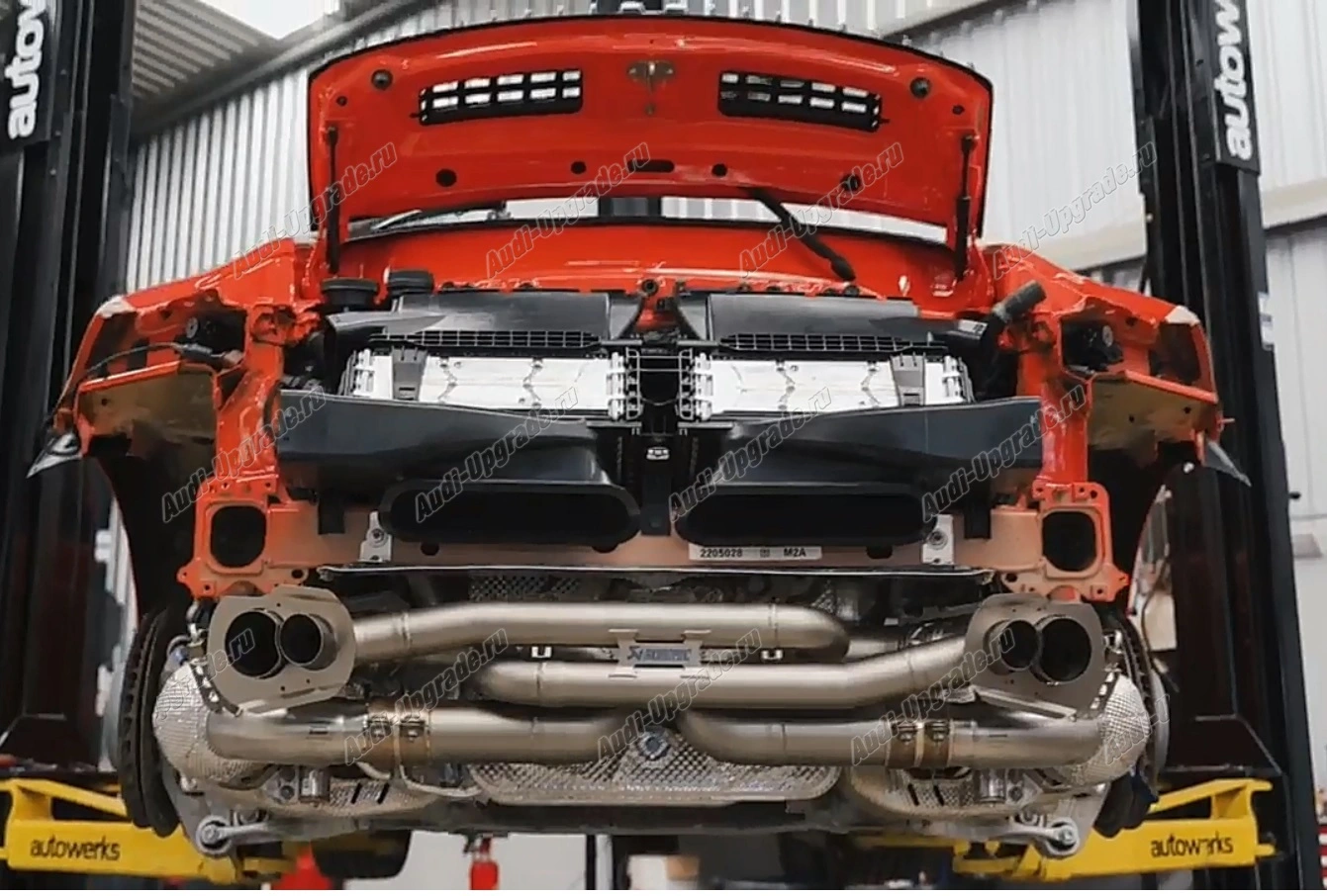 Выводя дизайн на новый уровень, Slip-OnRaceLine (Titanium) прекрасно отделан уникальными выхлопными трубами, демонстрирующими разнообразие поверхностей, подчеркивая последние достижения в области выхлопных технологий и производства. От внешней части, которая подверглась пескоструйной обработке и покрыта для повышения прочности и долговечности, а также имеет выгравированный лазером логотип Akrapovič, до внутренней трубы, которая отполирована снаружи и имеет внутреннее покрытие черного цвета, все установлено во вставках бампера. Эта система полностью дополняет линии автомобиля.
