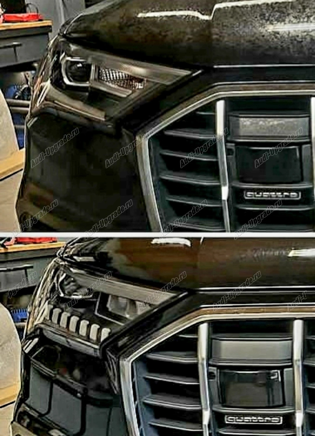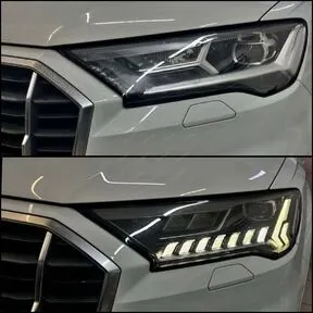 Змена базовых фар AUDI Q7 4M FL на Фары UDI MATRIX HD AUDI Q7 FL Рестайлинг