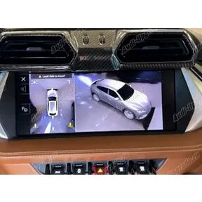 360 view: Система кругового обзора дополняет камеру заднего вида еще тремя камерами с высоким разрешением в передней части автомобиля и в нижней части корпусов зеркал заднего вида. На основе информации от всех четырех камер система генерирует виртуальный вид автомобиля в проекции сверху и выводит его на дисплей MIB.Также возможны различные виды и углы обзора