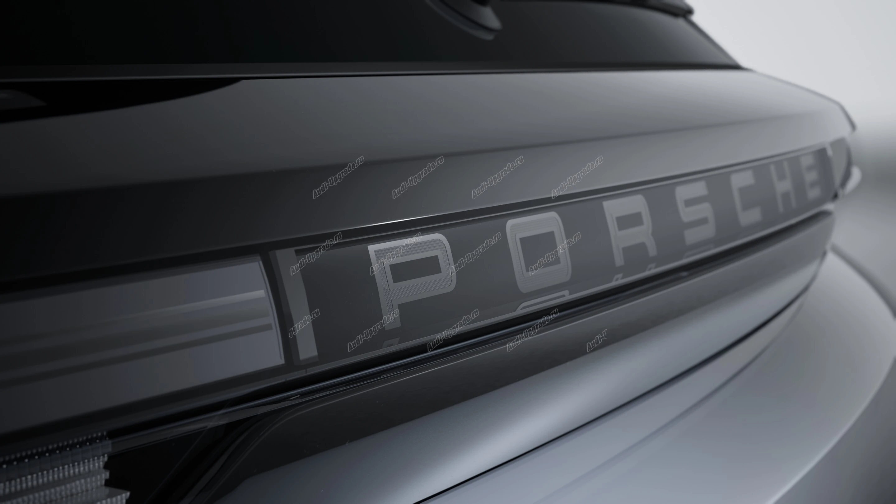 - Подсвеченная надпись "PORSCHE" с затемненным контуром